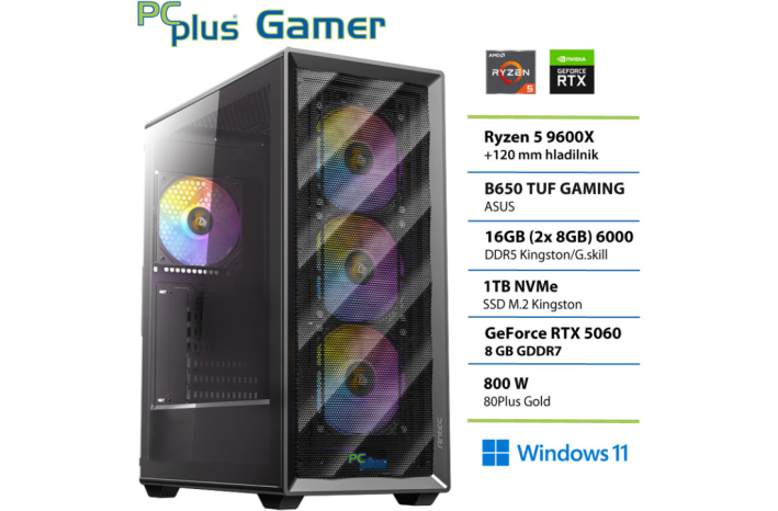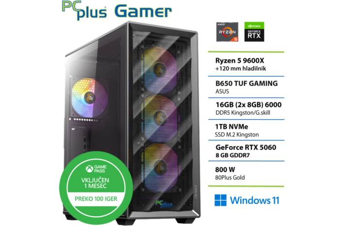 PCPLUS Gamer Ryzen 5 9600X 16GB 1TB NVMe SSD RTX 5060 8GB gaming namizni računalnik Windows 11 Home gaming namizni računalnik