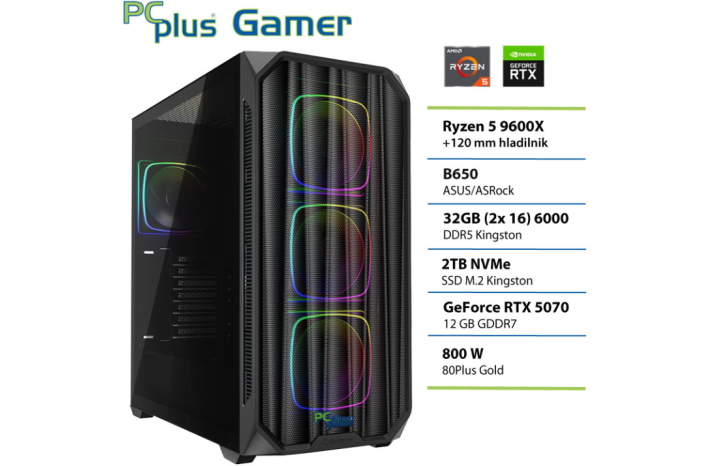 PCPLUS Gamer Ryzen 5 9600X 32GB 2TB NVMe SSD RTX 5070 12GB gaming namizni računalnik
