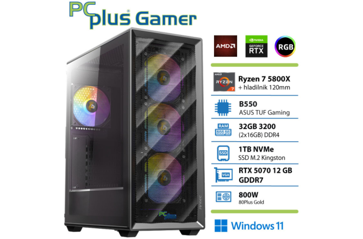 PCPLUS Gamer Ryzen 7 5800X 32GB 1TB SSD RTX 5070 12GB Windows 11 Home gaming namizni računalnik