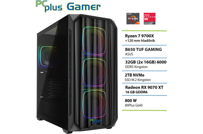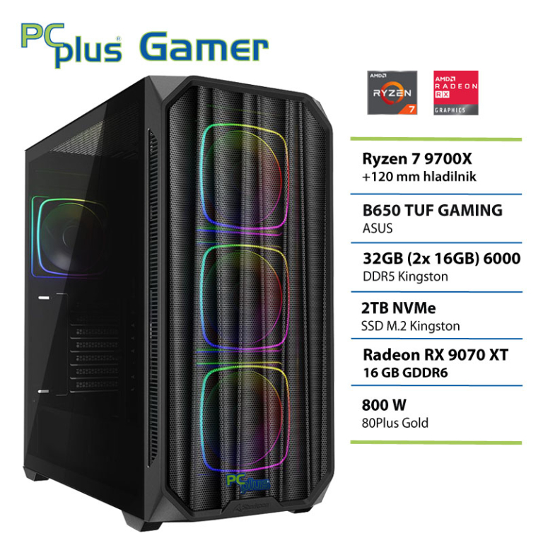 PCPLUS Gamer Ryzen 7 9700X 32GB 2TB NVMe SSD RX 9070 XT 16GB gaming namizni računalnik