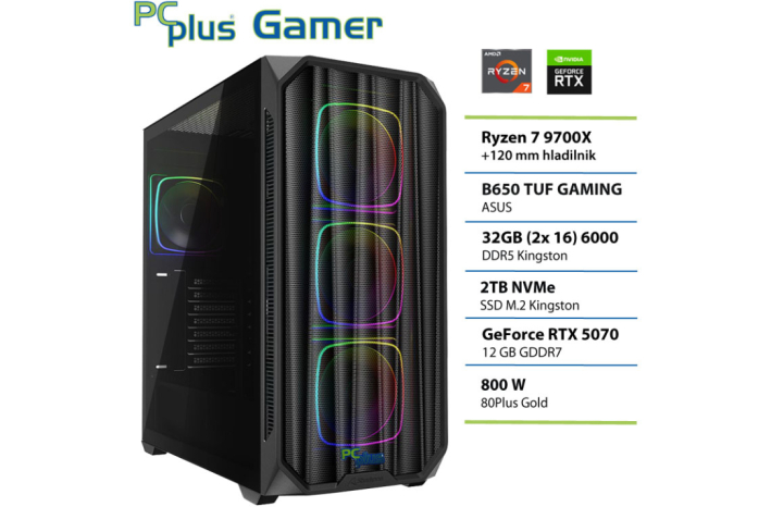 PCPLUS Gamer Ryzen 7 9700X 32GB 2TB NVMe SSD RTX 5070 12GB gaming namizni računalnik