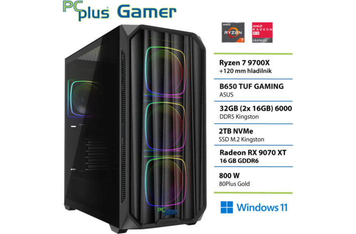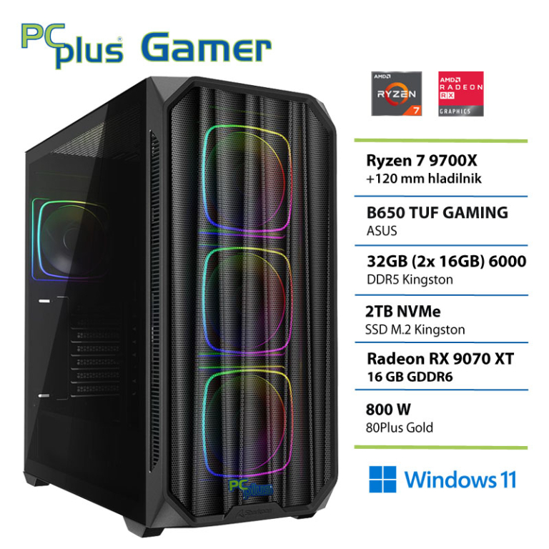 PCPLUS Gamer Ryzen 7 9700X 32GB 2TB NVMe SSD RX 9070 XT 16GB Windows 11 Home gaming namizni računalnik