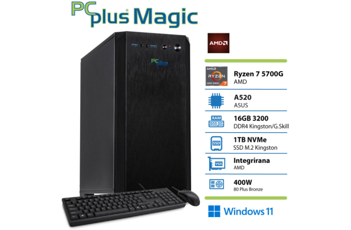 PCPLUS Magic Ryzen 7 5700G 16GB 1TB NVMe M.2 SSD miška tipkovnica Windows 11 Home namizni računalnik