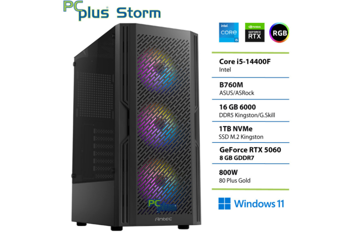 PCPLUS Storm Core i5-14400F 16GB 1TB SSD RTX 5060 8GB Windows 11 Home gaming namizni računalnik