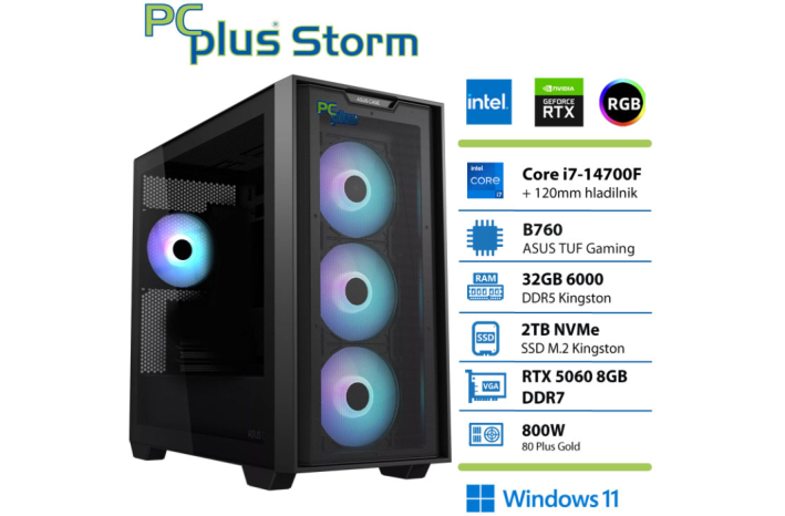 PCPLUS Storm Intel i7-14700F 32GB 2TB NVMe SSD RTX 5060 Ti 8GB Windows 11 Home gaming namizni računalnik