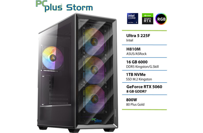 PCPLUS Storm Ultra 5 225F 16GB 1TB NVMe SSD GeForce RTX 5060 8GB gaming namizni računalnik