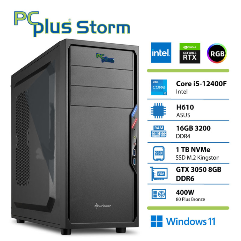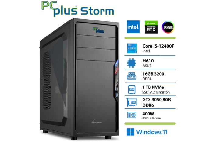 PCPLUS Storm i5-12400F 16GB 1TB NVMe SSD GeForce RTX 3050 8GB Windows 11 Home gaming namizni računalnik