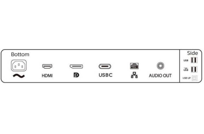 Vhodi: 2x HDMI 2.0, DisplayPort 1.2, USB-C 3.2 Gen1, USB-B 3.2 Gen1, RJ45 (Gigabit ethernet)
