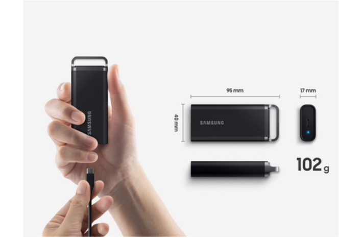 Prenosni SSD T5 Evo je primeren za uporabo pri delu, ustvarjanju, učenju in igranju. Kapaciteta 8TB poskrbi za dovolj prostora za shranjevanje vseh mogočih datotek - od slik, iger, video posnetkov in ostalih.