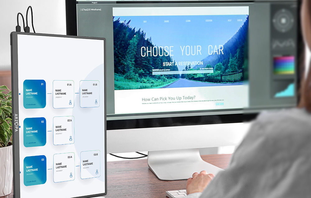 Prenosni monitor Arzopa ima ločljivost Full HD 1920 × 1080, ki zagotavlja natančne in žive slike. S hitrostjo osveževanja 60 Hz zagotavlja hitro in zanesljivo delovanje, razmerje stranic zaslona 16:9 pa vam bo prikazalo prave barve. Poleg tega je monitor opremljen tudi z dvema zvočnikoma, kar zagotavlja odlično kakovost zvoka. Z Arzopo se lahko popolnoma potopite v filme, ki jih gledate, ali izkusite igre, ki jih igrate.