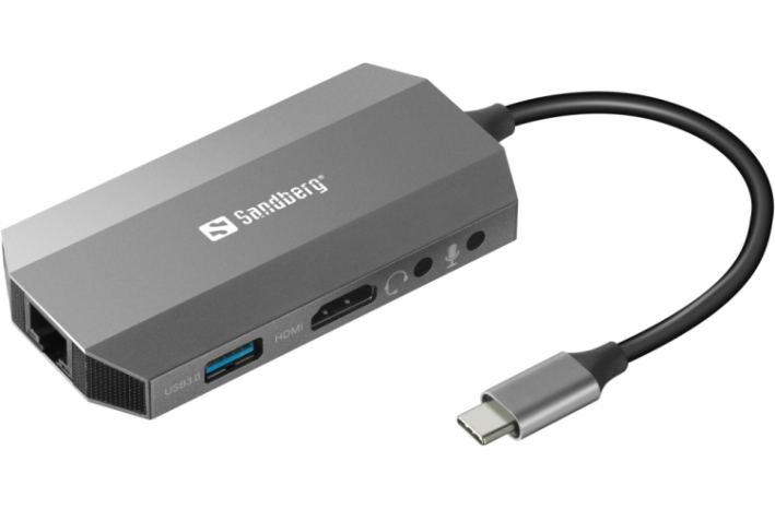 Sandbergova potovalna postaja USB-C 6v1 vam ponuja številne uporabne možnosti povezave za vaš računalnik s povezavo USB-C. S priključkom HDMI lahko priključite drug zaslon, TV ali projektor. Zunanje naprave USB lahko priključite na vrata USB 3.0. RJ45 konektor za žično omrežno povezavo. Vgrajeni bralnik kartic SD vam omogoča tudi branje pomnilniške kartice SD in shranjevanje podatkov neposredno na pomnilniško kartico SD. Zvočne povezave za slušalke in mikrofon. Vrata USB-C vključujejo podaljšek za priključitev napajalnika, tako da je vaš Macbook vedno napajan, ko je priključna postaja priključena.