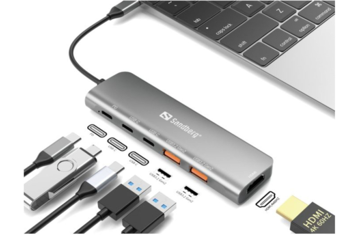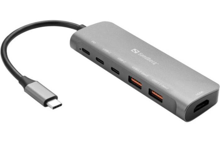 S Sandberg USB-C Dock HDMI + 2xUSB-A + 2xUSB-C + PD 100W priklopno postajo lahko svoj USB-C vhod uporabite za povezavo dodatnega zaslona, televizorja ali projektorja z računalnikom. Poleg tega sta na voljo dva USB-A vhoda za povezovanje USB naprav, dva USB-C vhoda in PD vhod za prenos napajanja, da se vaš MacBook/prenosnik ne izprazni med uporabo docka.