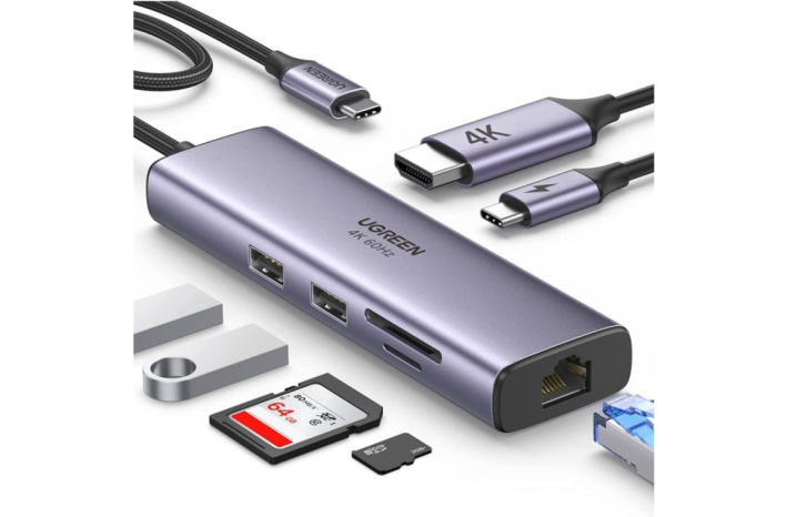 UGREEN Revodok USB C Hub ponuja vsestransko paleto vrat, vključno s podatkovnimi vrati USB-C 10 Gb/s, 100 W USB-C PD, podatkovnimi vrati USB-A in čitalci kartic SD/TF.