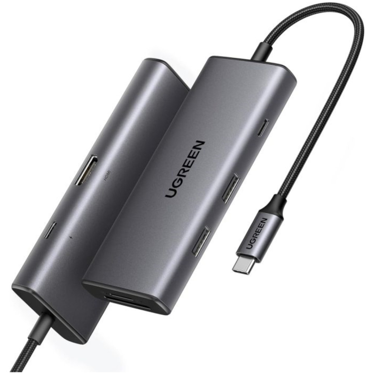 Priklopna postaja USB-C => Ugreen 1xHDMI 2xUSB3.0 USB-C 100W RJ45 čitalec kartic SD/microSD/TF (15531)