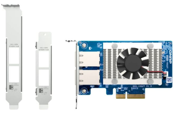 QNAP QXG-10G2T je omrežna razširitvena kartica PCIe Gen3 (združljiva s PCIe Gen2) 10GbE s krmilnikom Marvell® AQtion AQC107,