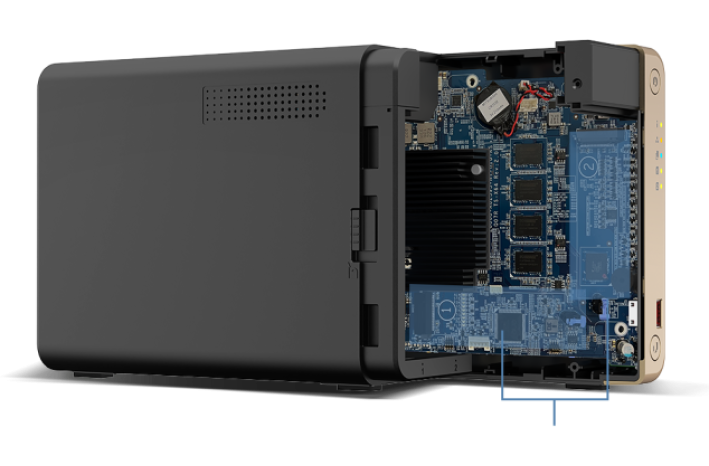 Dve reži M.2 PCIe Gen 3 omogočajo predpomnjenje NVMe SSD ali pomnilniška področja SSD za izboljšano zmogljivost ali Edge TPU za prepoznavanje slik z umetno inteligenco.