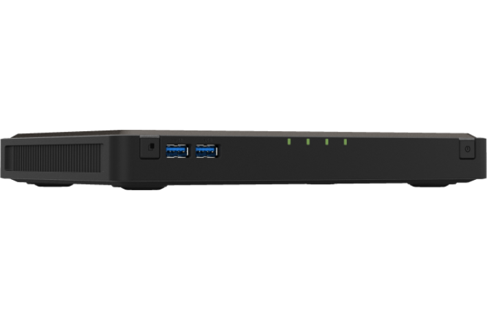TBS-464, ki ga poganja štirijedrni procesor Intel Celeron N5105 (do 2,9 GHz), ima dva mrežna priključka 2,5 GbE in vrata USB 3.2 Gen1