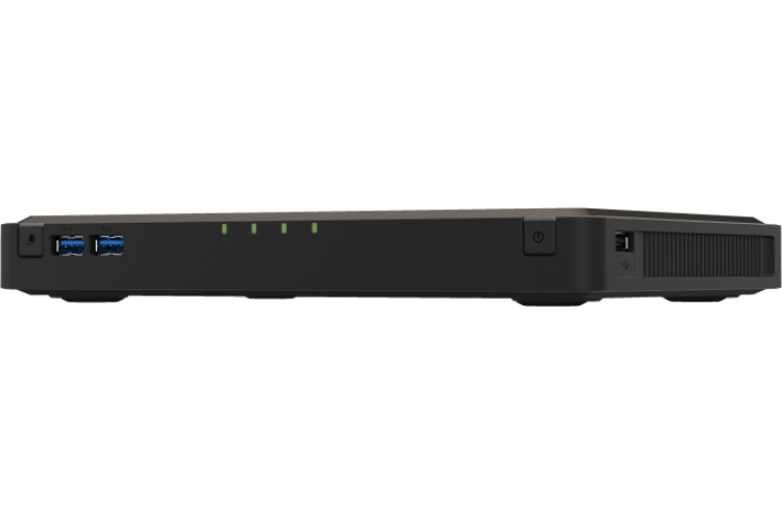 V primerjavi z običajnim NAS-om, TBS-464 uporablja M.2 NVMe SSD (naprodaj ločeno) za shranjevanje, kar mu omogoča, da je znatno manjši in tišji,