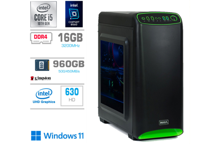 Računalnik MEGA MT 4000S i5-10400 je zmogljiv računalnik z integrirano grafiko, 16GB pomnilnika in 960GB SSD diskom.