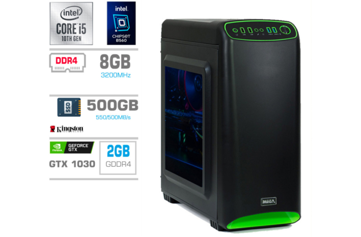 Računalnik MEGA MT 4000S i5-10400F je zmogljiv računalnik z Intel Core i5 procesorjem, Nvidia GT1030 grafično kartico in 8GB pomnilnika. Odlična izbira za delo in igre.