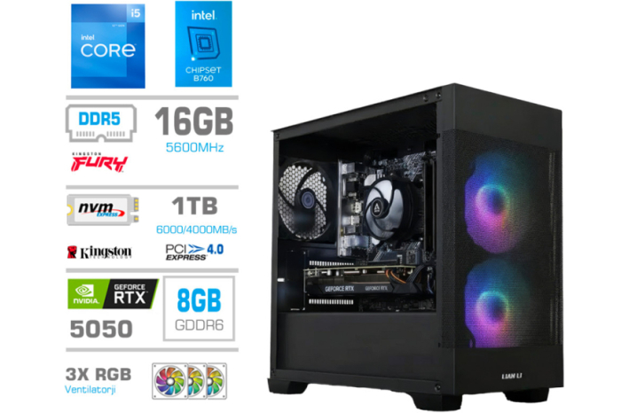 Računalnik MEGA MT S7X i5-12400F/RTX5050/16GB/1TB-4.0/750W/Brez OS/črna RGB