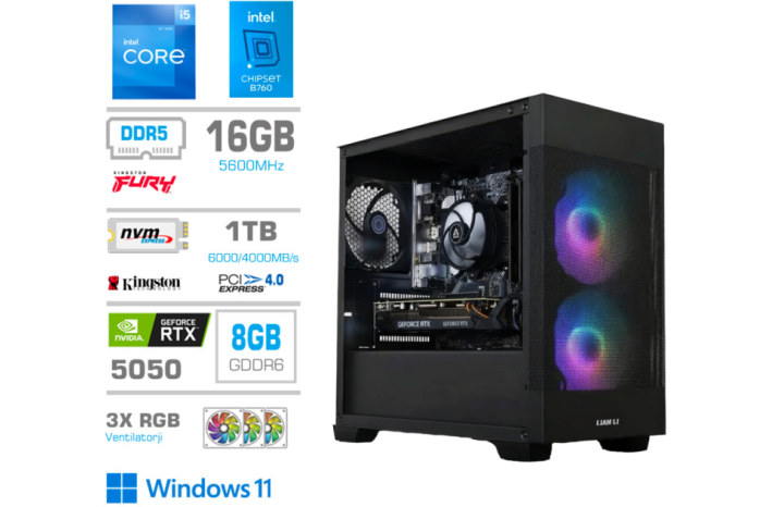 Računalnik MEGA MT S7X i5-12400F/RTX5050/16GB/1TB-4.0/750W/Win11Home/črna RGB