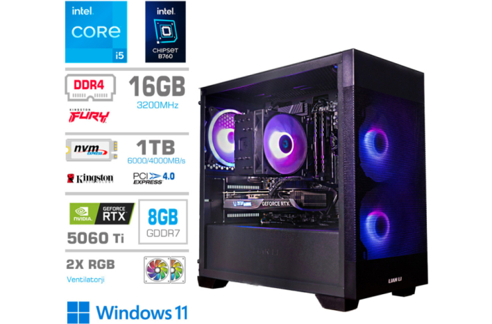 Računalnik MEGA MT S7X i5-13400F/RTX5060Ti/16GB/1TB-4.0/750W/Win11Home/črna RGB