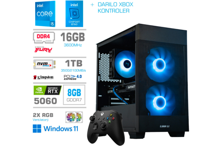 Računalnik MEGA MT S7X i5-14400/RTX5060/16GB/1TB-4.0/750W/Win11Home/črna RGB + Estetski napajalni kabli [Modra / Črna] * DARILO *