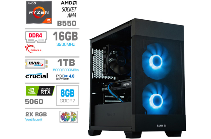 Računalnik MEGA MT S7X R7-5700X/RTX5060Ti-16GB/32GB/1TB-4.0...