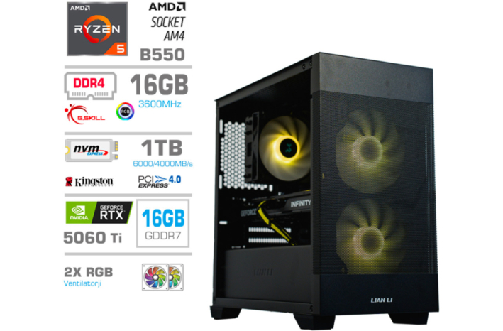 Računalnik MEGA MT S7X R5-5600X/RTX5060Ti-16GB/16GB/1TB-4.0/750W/Brez OS/črna RGB + Estetski napajalni kabli [Rumena / Črna]
