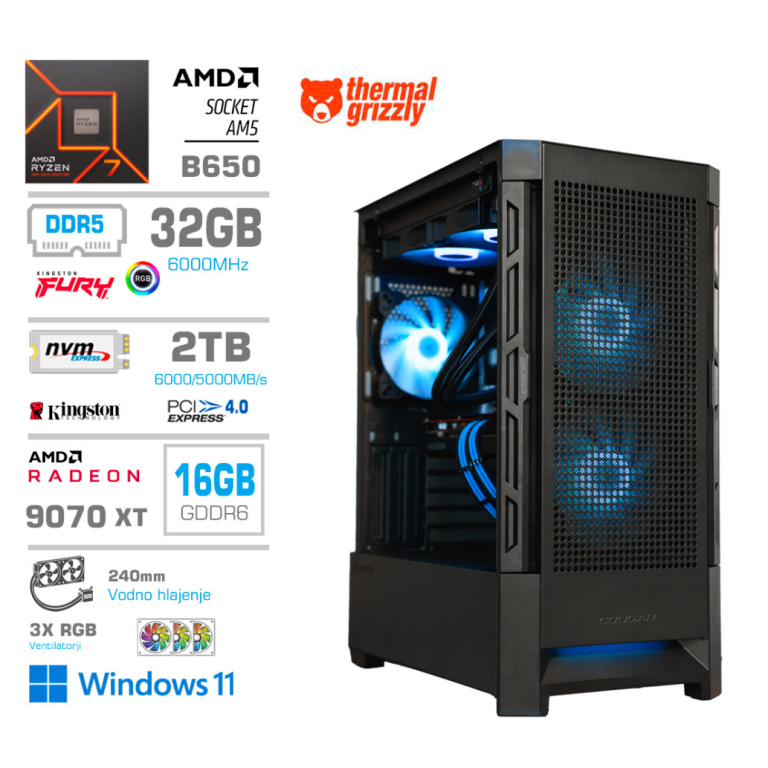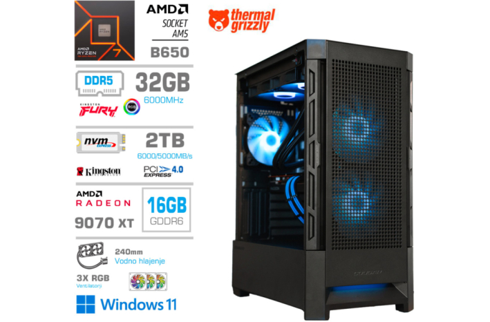 Računalnik MEGA MT S8 R7-7700X/RX9070 XT/32GB-DDR5/2TB-4.0/750W/Win11Home/črna RGB + Estetski napajalni kabli [Modra / Črna]