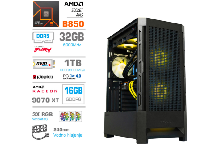 Da bi zagotovili neprekinjeno vrhunsko delovanje, so vsi računalniki v seriji MEGA S8 zasnovani z možnostjo vodnega hlajenja procesorja. Ta napredna rešitev omogoča učinkovito odvajanje toplote tudi med najzahtevnejšimi igralnimi maratoni ali ustvarjalnimi projekti. Z našimi sistemi na osnovi matičnih plošč B650 ali B850 je nadgradnja preprosta, kar zagotavlja, da bo vaš računalnik pripravljen na prihodnje generacije komponent.