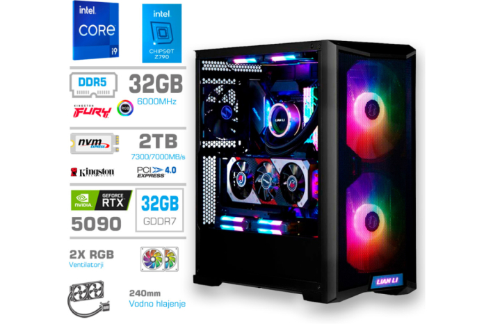Računalnik MEGA TWR S10 i9-14900K/RTX5090/32GB-DDR5/2TB-4.0/1000W/Brez OS/črna RGB