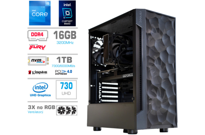 Z osnovo na B660 matični plošči, ta serija prinaša popolno ravnovesje med vrhunsko tehnologijo in izjemnimi možnostmi nadgradenj. Odprt svet prilagoditev čaka z možnostjo razširitve grafičnih kartic od RTX 3050 pa vse do impresivnega RTX 4070Ti Super, omogočajoč tako brezhibno igranje najnovejših iger kot tudi brezskrbno delo z grafično zahtevnimi aplikacijami.