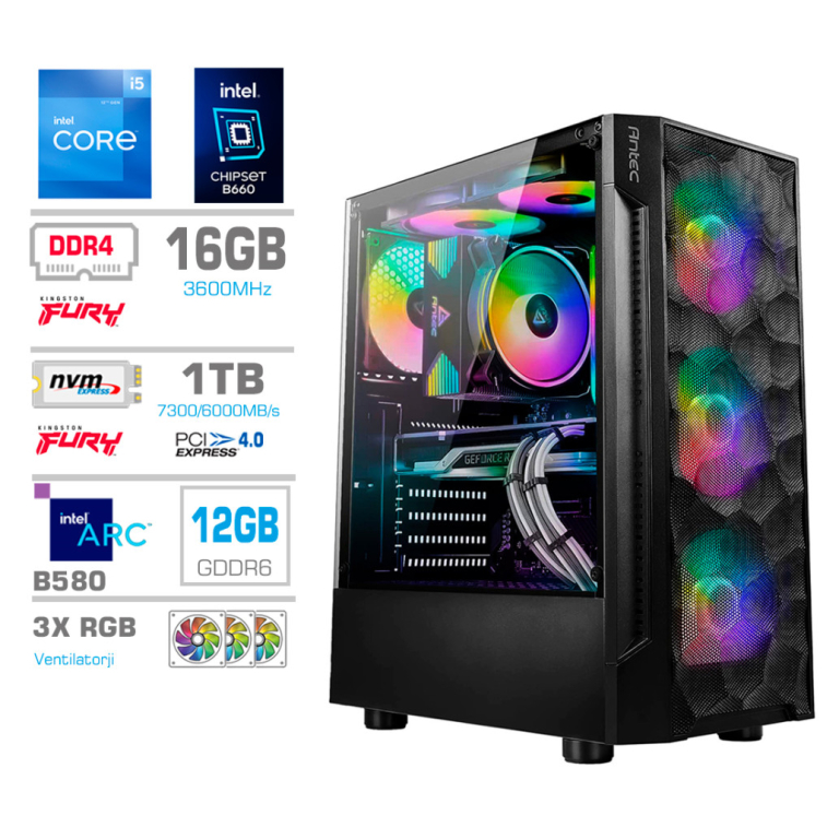 Računalnik MEGA TWR S7 i5-12400F/Intel Arc B580