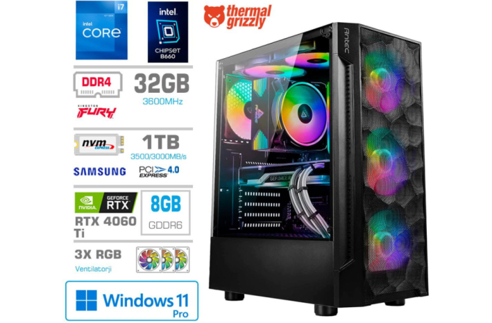 Z osnovo na B660 matični plošči, ta serija prinaša popolno ravnovesje med vrhunsko tehnologijo in izjemnimi možnostmi nadgradenj. Odprt svet prilagoditev čaka z možnostjo razširitve grafičnih kartic od RTX 3050 pa vse do impresivnega RTX 4070Ti Super, omogočajoč tako brezhibno igranje najnovejših iger kot tudi brezskrbno delo z grafično zahtevnimi aplikacijami.