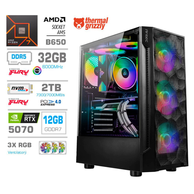 | Grafična kartica: | nVidia RTX5070 MSI Ventus 2X OC 12GB GDDR7 |