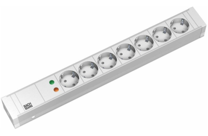 Razdelilec Bachmann 2,00m 7x230V ALU rack 1U (333.004)