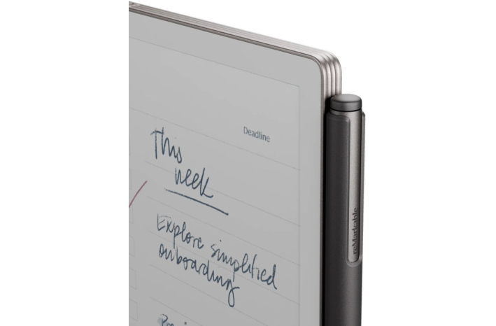 Z okvirjem iz eloksiranega aluminija in teksturiranim steklenim zaslonom je reMarkable Paper Pro Move vedno videti profesionalno.