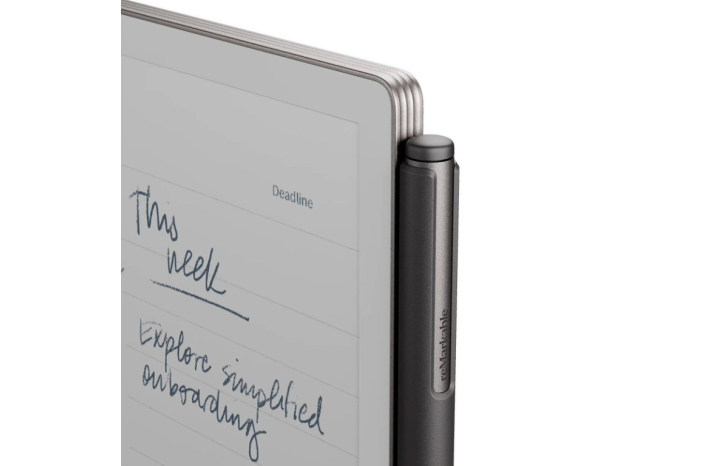 Z okvirjem iz eloksiranega aluminija in teksturiranim steklenim zaslonom je reMarkable Paper Pro Move vedno videti profesionalno.