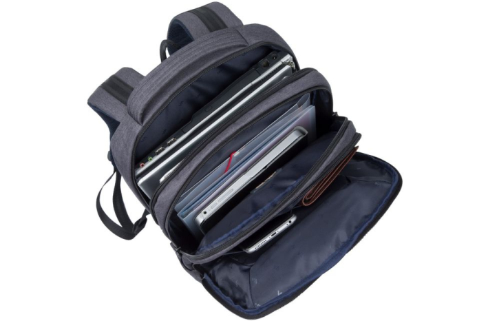 • Sprednji predal za shranjevanje z zadrgo z organizatorsko ploščo z režami za vizitke, pisala, kable USB in pametni telefon