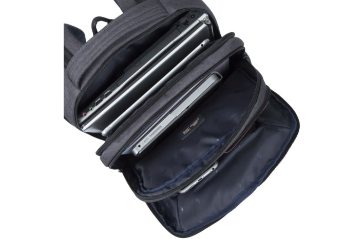 • Glavni navpični tovorni prostor z mehkimi stranicami in trakom varno pritrdi vaš prenosnik