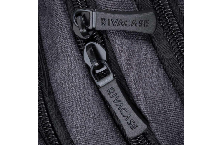 Debele temno črne industrijske vrvice za zadrgo dodajo obliko oglje sivo-črnim površinam, da torbi dajejo močan občutek trdnosti in urbanosti.