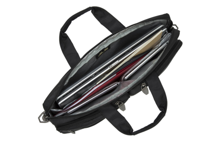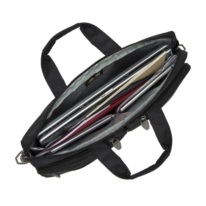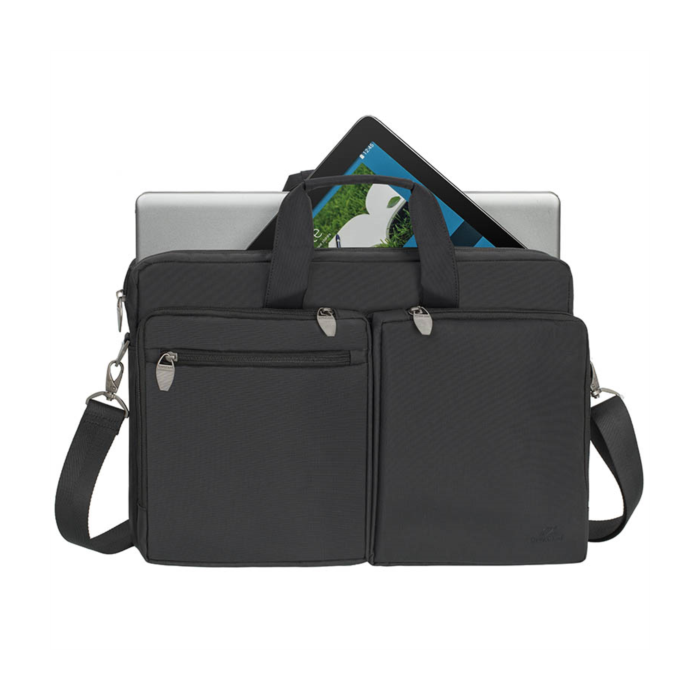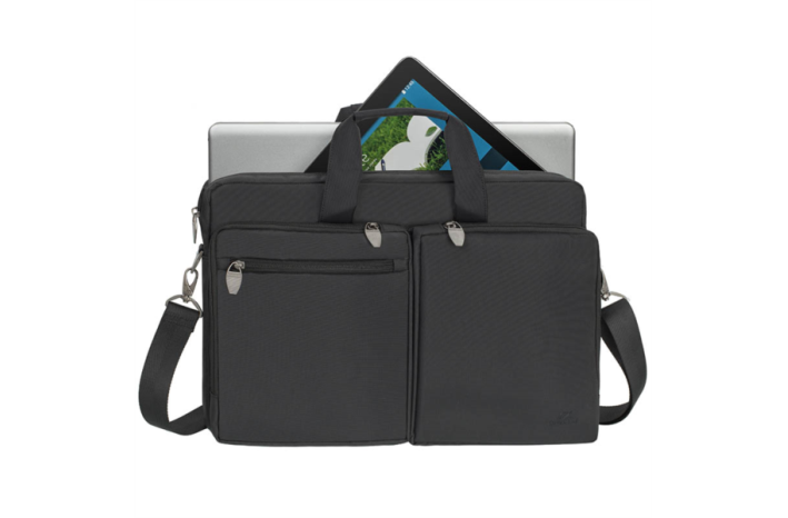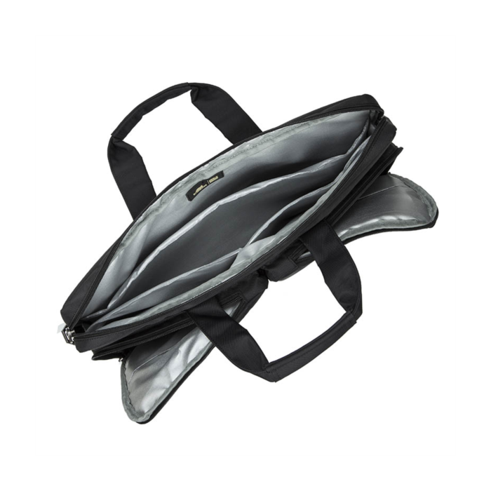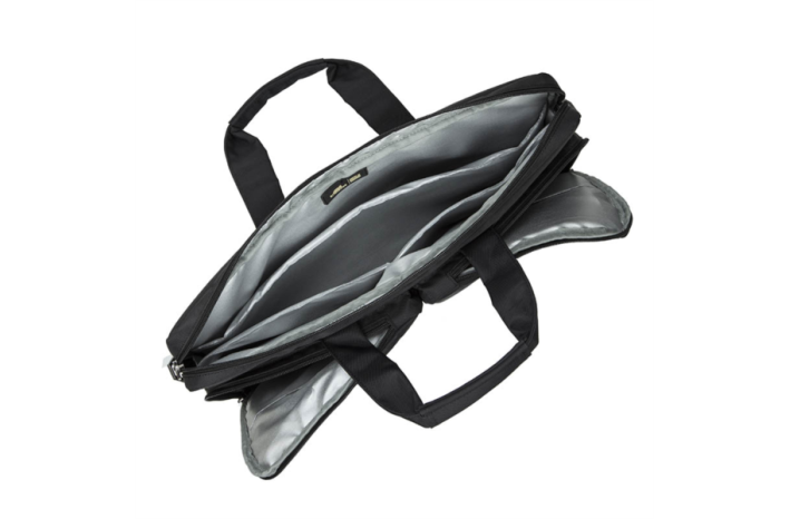 • Torba je narejena iz vodoodpornega poliestra in zasnovana za prenašanje notesnikov z zasloni do 17,3".