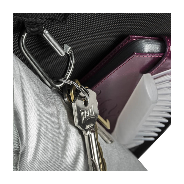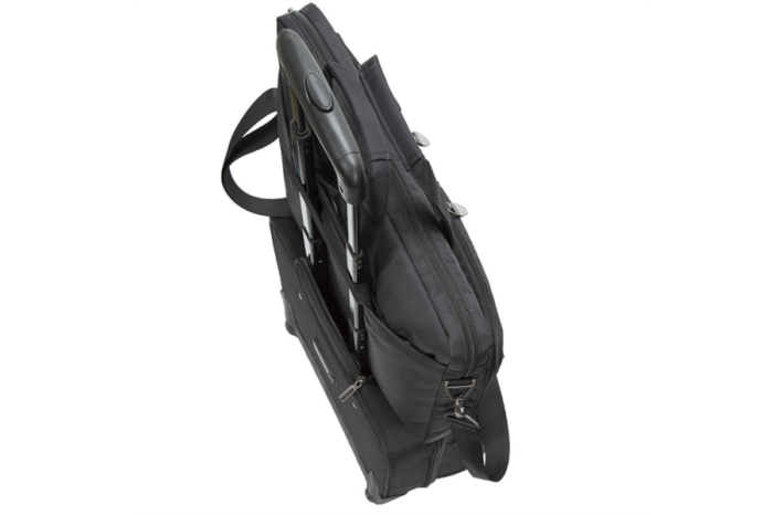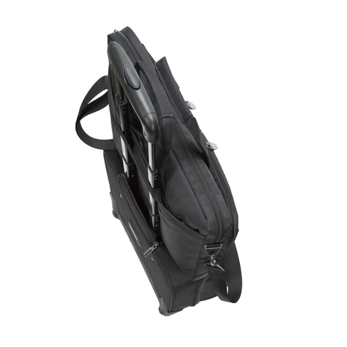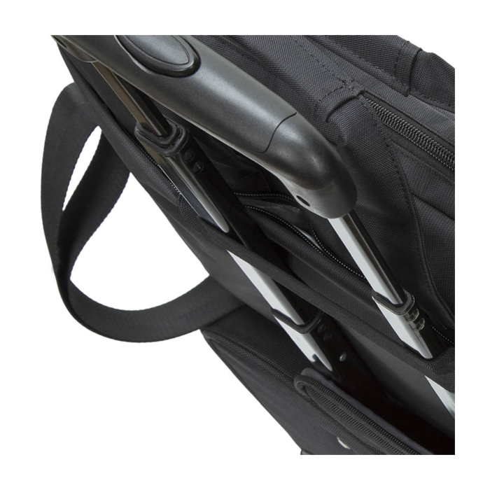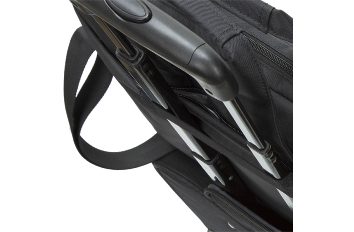 • Zunanji razdelek na zadnji strani ima elastični trak za pritrditev torbe na ročaj prtljage.
