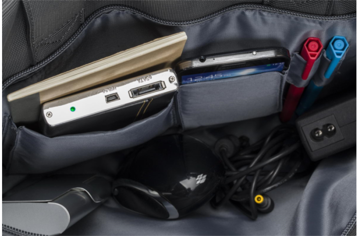 • Sprednji žep ima vstavek za mobilni telefon, dokumente, dodatno opremo.