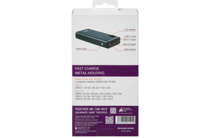 Rivacase VA1022 20000mAh QC/PD prenosna baterija