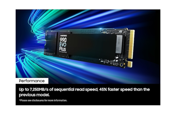 990 EVO Plus prinaša povečane zaporedne hitrosti branja/pisanja do 7250/6300 MB/s.