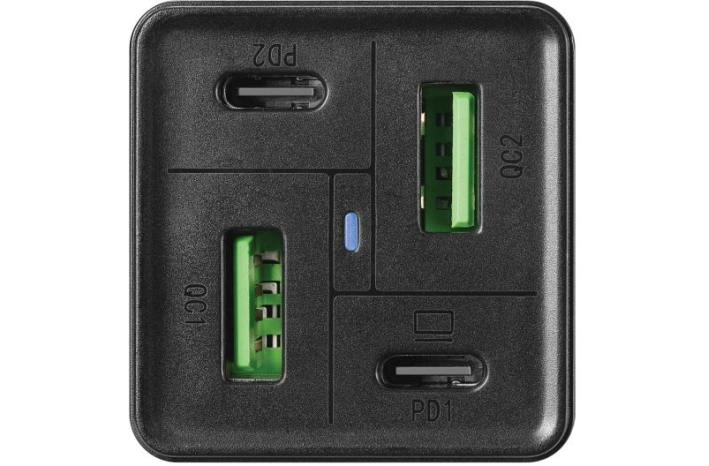 Z dvema vhodoma USB-C PD in dvema vhodoma USB-A QC lahko enostavno napajate do 4 naprave hkrati, s čimer odpravite množico nepotrebnih kablov na mizi.