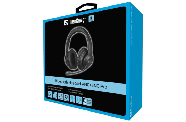 Podatki o pakiranju: 1x Sandberg Wireless Headset ANC+ENC Pro, 1x polnilni kabel USB-C na USB-C (1,5 m), 1x adapter USB-C na USB-A, 1x navodila za uporabo, 1x varnostna navodila GPSR